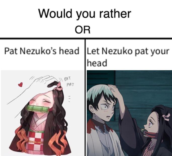 If you discover this site serviceableness, please support us by sharing this posts to your preference social media accounts like Facebook, Instagram and so on or you can also Save this blog page with the title Nezuko Head Pat Meme by using Ctrl + D for gadgets a laptop with a Windows operating system or Command + D for laptops with an Apple operating system. If you use a smartphone, you can also use the drawer menu of the browser you are using. Whether it's a Windows, Mac, iOS or Android operating system, you will still be able to bookmark this website.